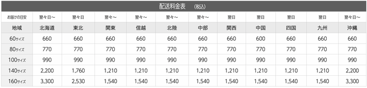 配送料金表