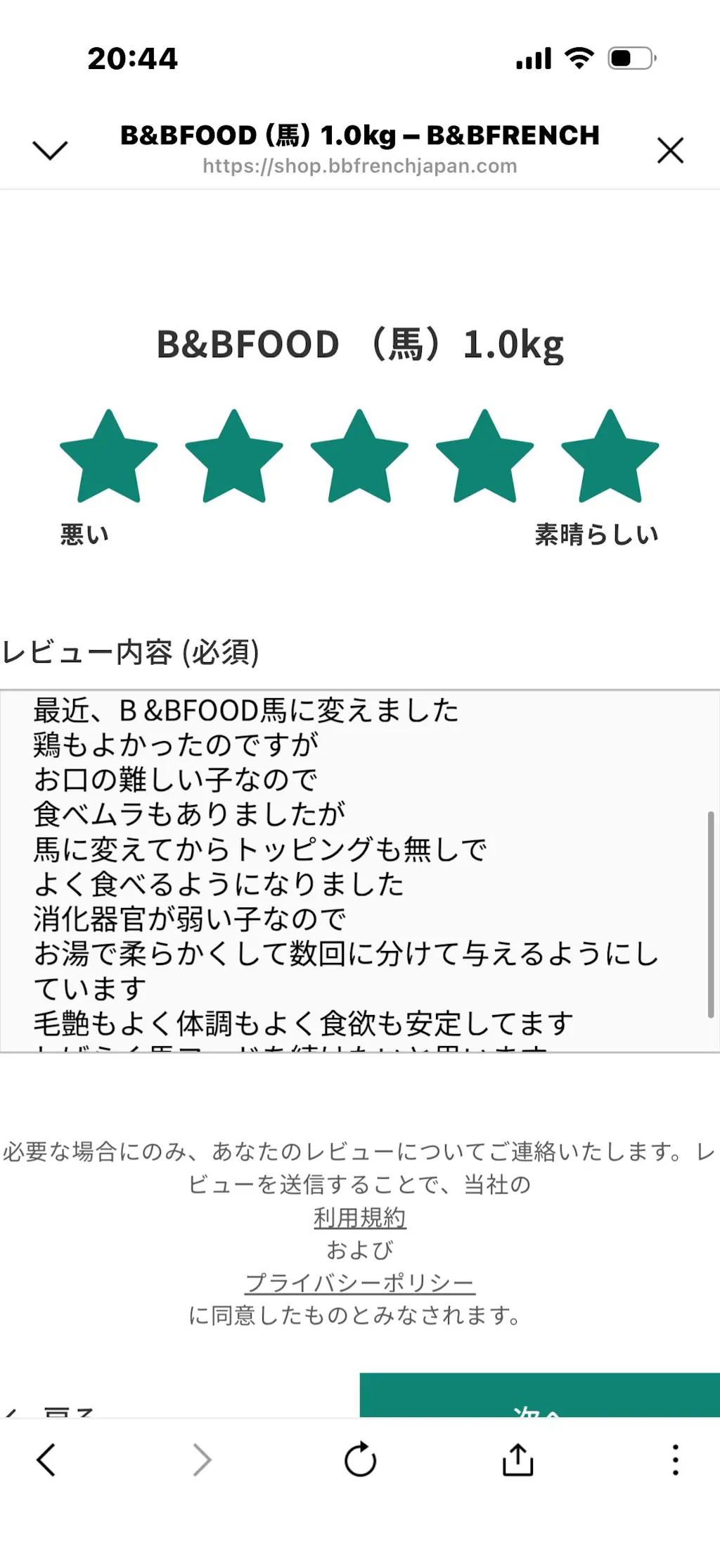 ・B&BFOODへ急に切り替えると、お腹がゆるくなる場合があります。